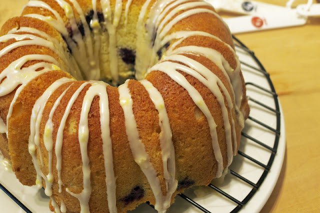 The cake turned out really well. I'm thinking of making it again with orange peel and poppy seeds instead of the blueberries and lemon.